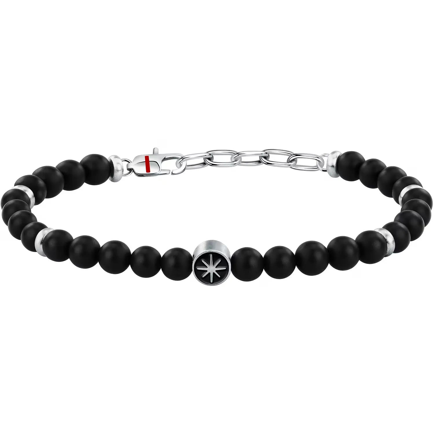 Marca: Sector SKU: SAGJ37 Genere: Uomo Misura: 20+3 cm Colore: Silver Collezione: Sector Experience: Jewels Materiale: Acciaio, Gemme Diametro Perle: ∅6mm Pietra: Agata Colore pietra: Nero Certificato di autenticità: Sì Confezione: Originale Sector