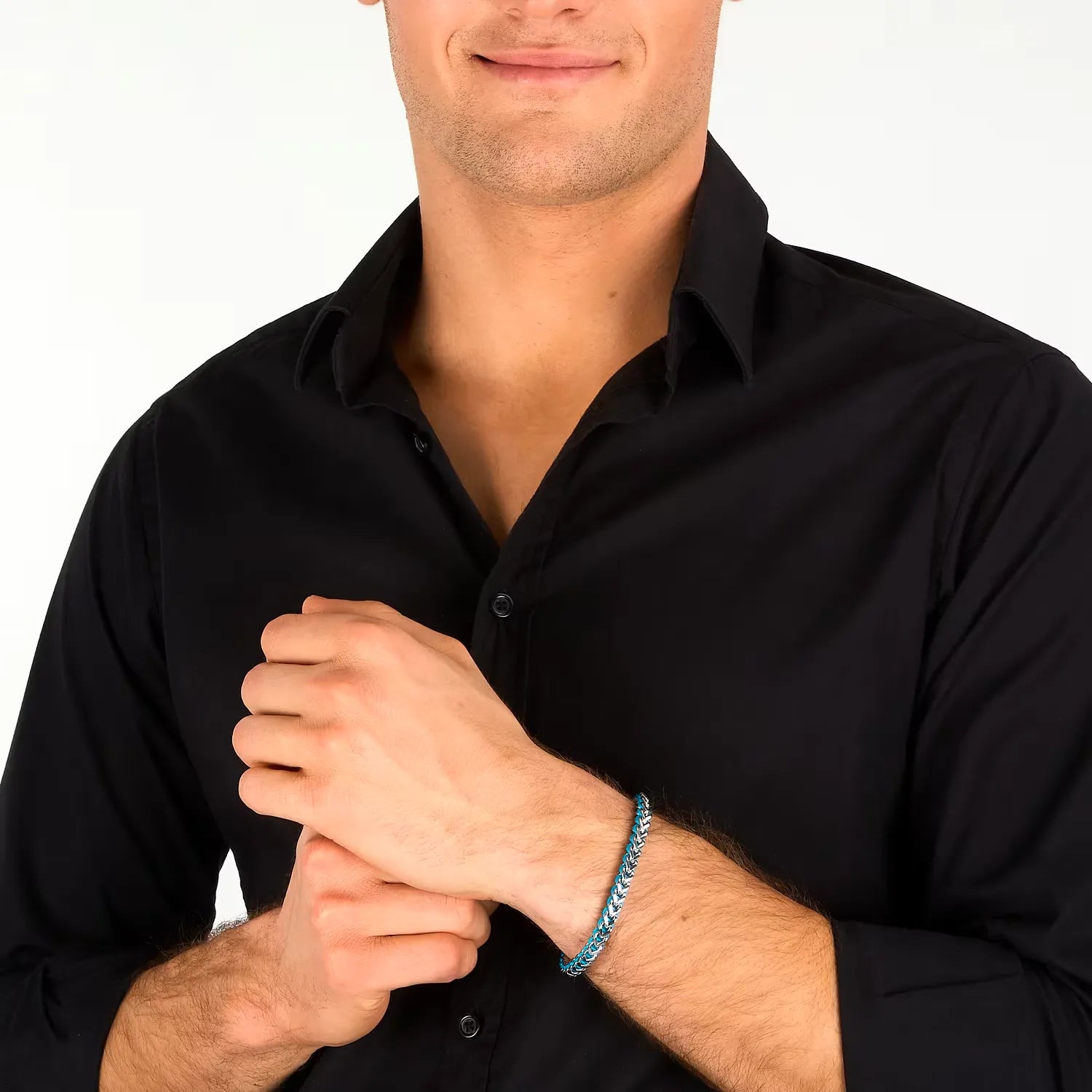 Marca: Sector Jewels Collezione: Bandy Codice Articolo: SZV133 Genere: Uomo Materiale: Acciaio inossidabile e pelle/tessuto Colore: Silver e Azzurro Modello: Catena intrecciata Misura: 19+3 cm (regolabile) Peso: 16,020 gr Certificato di autenticità: Sì Confezione: Originale Sector