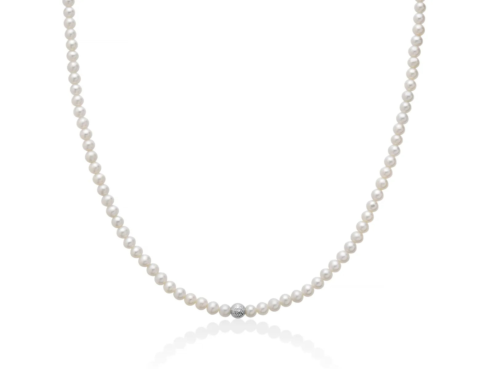 Referenza: PCL6747 - Genere: Donna - Tipologia: Collana/Girocollo - Materiale: Oro 750/1000 (Oro Bianco) - Pietre: Perle Vere Oriente, Col. Bianco - Dimensione Perle: 4-4,5 mm - Finitura Perle: Fl 1 - Collezione: Perle Boule E Fantasia.
