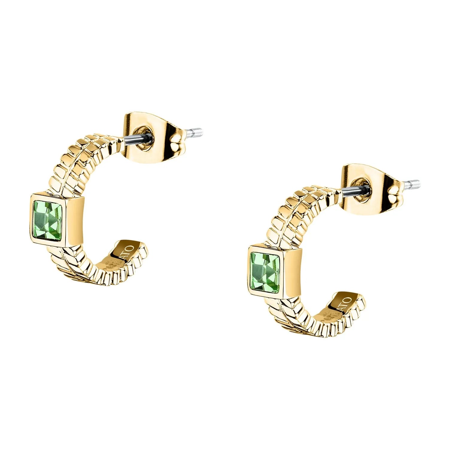 Mostra la tua passione per il lusso e l'eleganza con gli orecchini Morellato Gioia SAVY42, un accessorio che si distingue per il suo design curato e i dettagli di stile. Gli orecchini a cerchio in acciaio dorato con cristalli verdi incastonati lo rende un gioiello perfetto per la donna che cerca un tocco di originalità e stile.