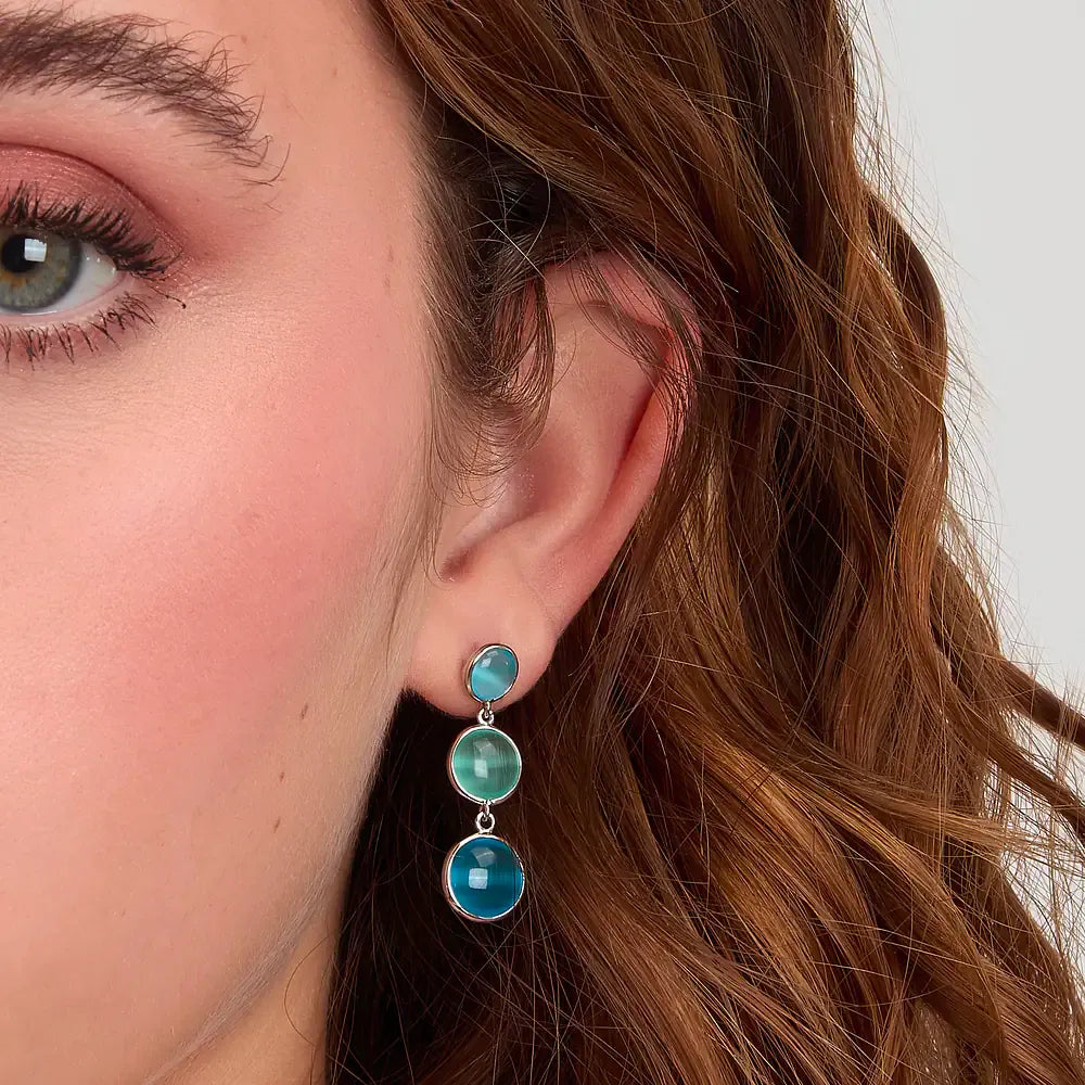 Questi orecchini rappresentano la sintesi perfetta della "Morellato Experience", dove l'impegno per l'ambiente si fonde con una ricerca estetica luminosa e senza tempo. Il design verticale si compone di tre pietre semipreziose dal taglio cabochon, incastonate in castoni circolari d'argento che degradano dolcemente in dimensione e tonalità, passando dall'azzurro cielo al verde acqua profondo. La finitura lucida dell'argento sostenibile amplifica la brillantezza naturale delle pietre, creando un accessorio capace di illuminare il viso con riflessi freschi e acquatici. Con una lunghezza di 27 mm e un peso bilanciato di 3,50 grammi, gli orecchini SAZM08 garantiscono una presenza scenica elegante senza rinunciare al comfort necessario per un indosso quotidiano. Sono la scelta ideale per la donna che desidera un gioiello distintivo, moderno e attento alla sostenibilità dei materiali. Acquistandoli su Arena Gioielli, riceverai un prodotto autentico completo di certificato, confezione originale Morellato e il nostro esclusivo kit regalo.