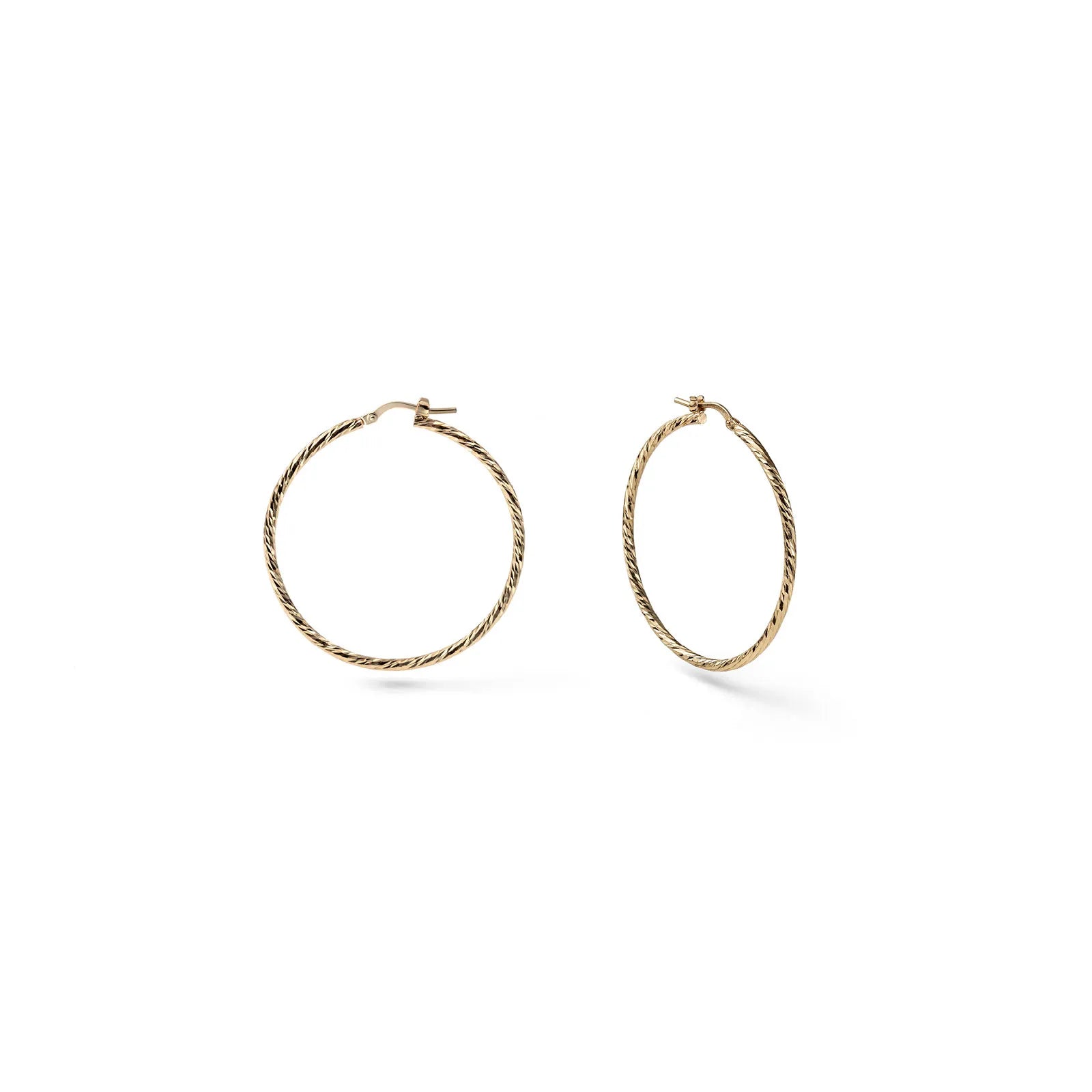 Design e Luminosità: Questi orecchini a cerchio (come si può osservare nell'immagine di riferimento "oecchini cerchi donna unoaerre.webp") vantano uno stile minimal chic. Sono realizzati in ottone con una placcatura in oro e si distinguono per la loro finitura diamantata, che aggiunge una lucentezza unica e un finish luminoso.