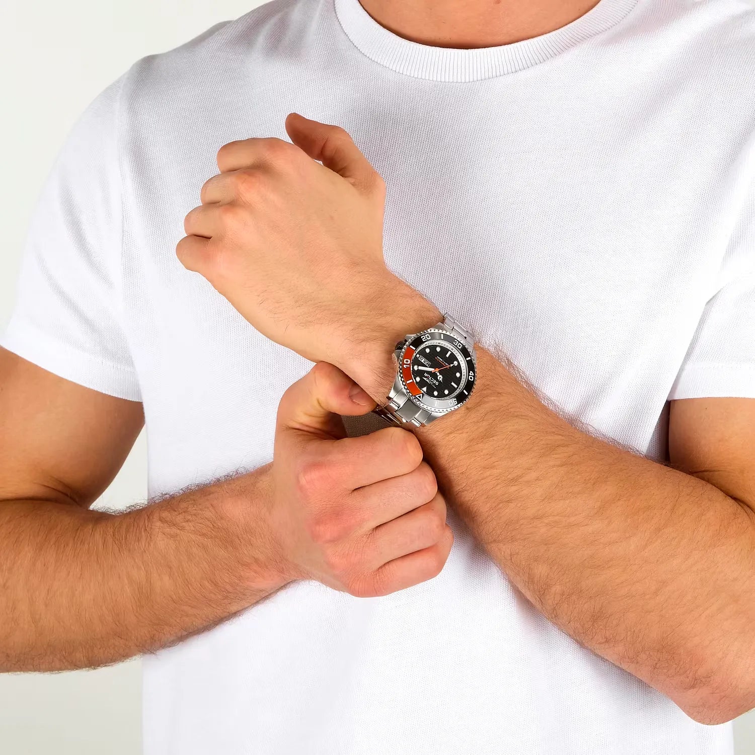 Il cuore pulsante di questo segnatempo è un movimento automatico di precisione, che assicura affidabilità senza l'uso di batterie. La cassa in acciaio ha uno spessore di 13,30 mm, conferendo una presenza importante al polso ma mantenendo un comfort ergonomico. La resistenza all'acqua è garantita fino a 20 ATM (200 metri), ideale per immersioni ricreative e sport acquatici. Il bracciale in acciaio silver, dotato di chiusura deployante con pulsanti di sicurezza, offre massima resistenza e praticità. Il prodotto è nuovo ed originale, spedito con la scatola ufficiale Sector e il certificato di garanzia del produttore. Incluso gratuitamente nel tuo ordine troverai il kit confezione regalo firmato Arena Gioielli per un dono pronto da consegnare. La garanzia ufficiale internazionale Sector della validità di 24 mesi è inclusa nella spedizione.